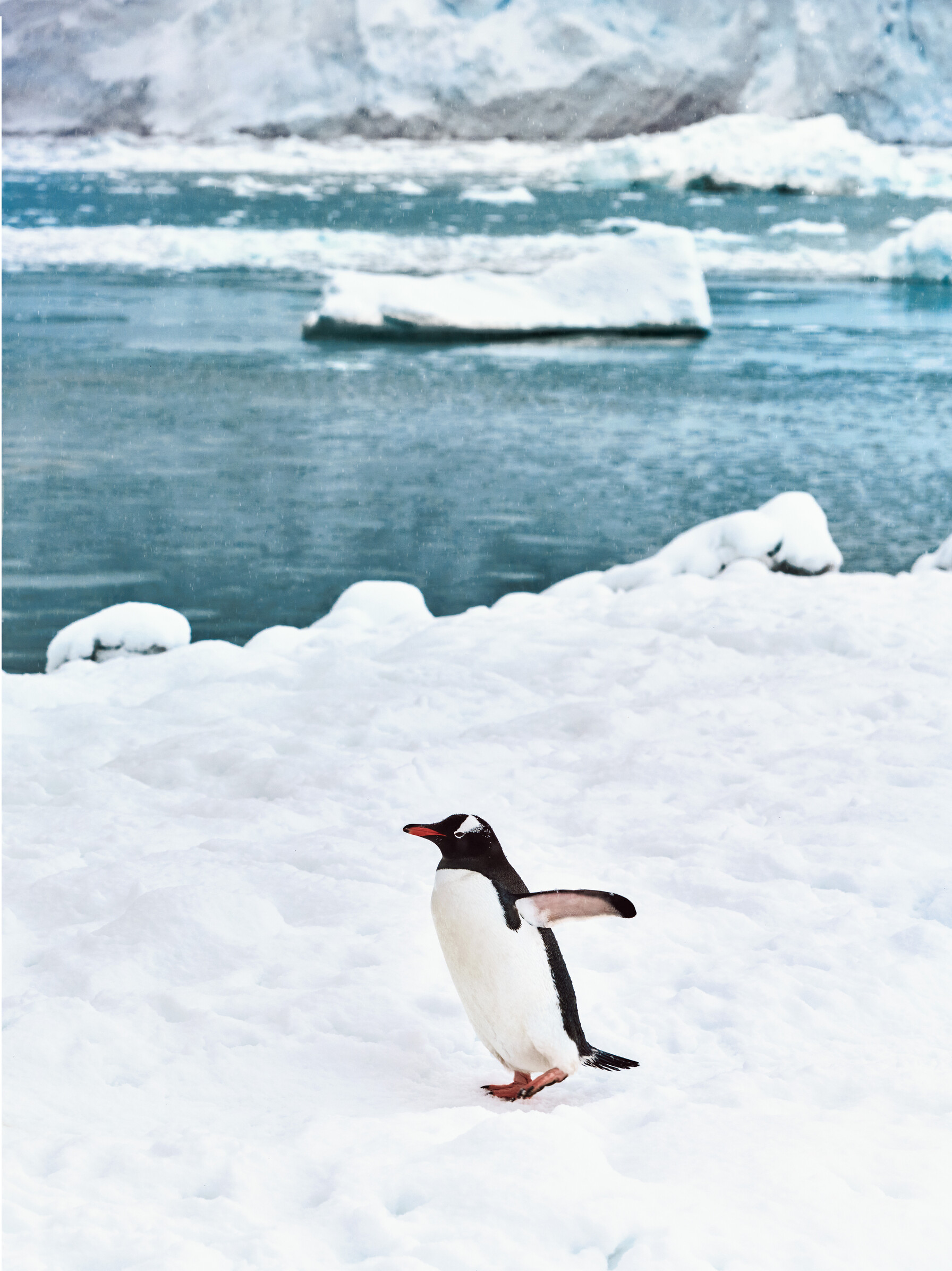 Meanwhile, exploration is both immersive and intimate. Zodiac excursions navigate through icebergs and along glacial coastlines, while guided kayaking offers a quieter way to move through Antarctic waters. Encounters with penguins, seals, and whales can also happen up close, framed by some of the most dramatic scenery on Earth.