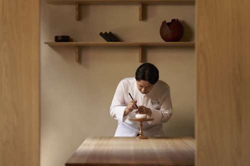 Enter the compound where one of the black and white colonial houses along Scotts Road sits and you’ll be surprised by a quaint wooden structure fashioned after a kyo machiya, or a Kyoto-style wooden townhouse. This custom-built hideout is home to AMI Patisserie, where Chef Makoto Arami brings to life European-style pastries that are made even more special with Japanese produce and influence. At the front is a 12-seater patisserie café concept, where diners can quietly and casually enjoy his signature bakes and incredibly flaky croissants, alongside aromatic coffee and tea.