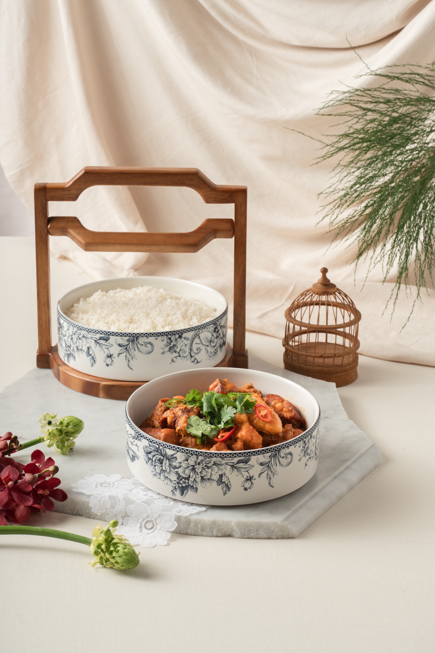 The menu unfolds as a personal archive of Kristang home cooking. Christmas Debal, traditionally eaten on Boxing Day, is a robust, slow-cooked stew comprised of smoked ham, ham bones, roast pork, and chicken that gains depth with time. Comfort arrives in the form of the Nourishing Chicken Soup cooked with coconut water and Hakka yellow wine, gently prepared to comfort and restore; a subtle contrast to the bolder flavours on the table.
