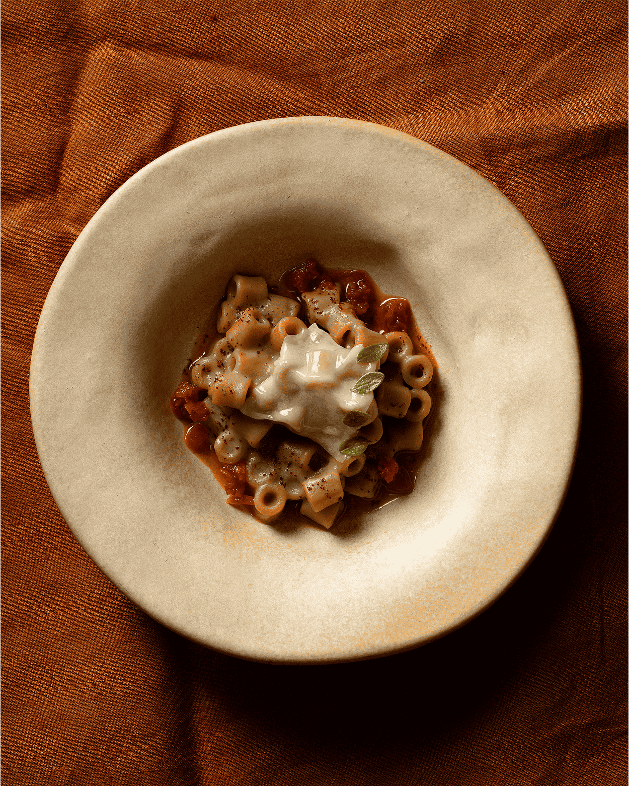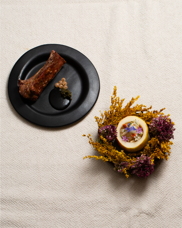 Highlights include a delicate Indigenous Mushrooms Broth (featuring eight mushroom varieties) that warms the stomach and opens the palate, followed by Hand-Dived Scallop seasoned with a ten-week fermented beef garum, balanced by a tart plum-pomegranate broth. Ditali pasta simmered in Parmigiano whey and finished with clay-cooked eggplant and tomato chimichurri channels Puglia’s cucina povera philosophy, while Milk-Fed Lamb with squid ink and a pretty side of pear kimchi bridges land and sea in a single, contemplative plate, which is best finished with your fingers. To end the meal, the dessert by Pastry Director Jeanette Ow features a Cheese Soufflé artisanal Puglian cheese, sollies fig, and grape tamari, served with a side of vanilla-scented crème anglaise infused with fig leaves, which closes the menu with warmth and finesse.