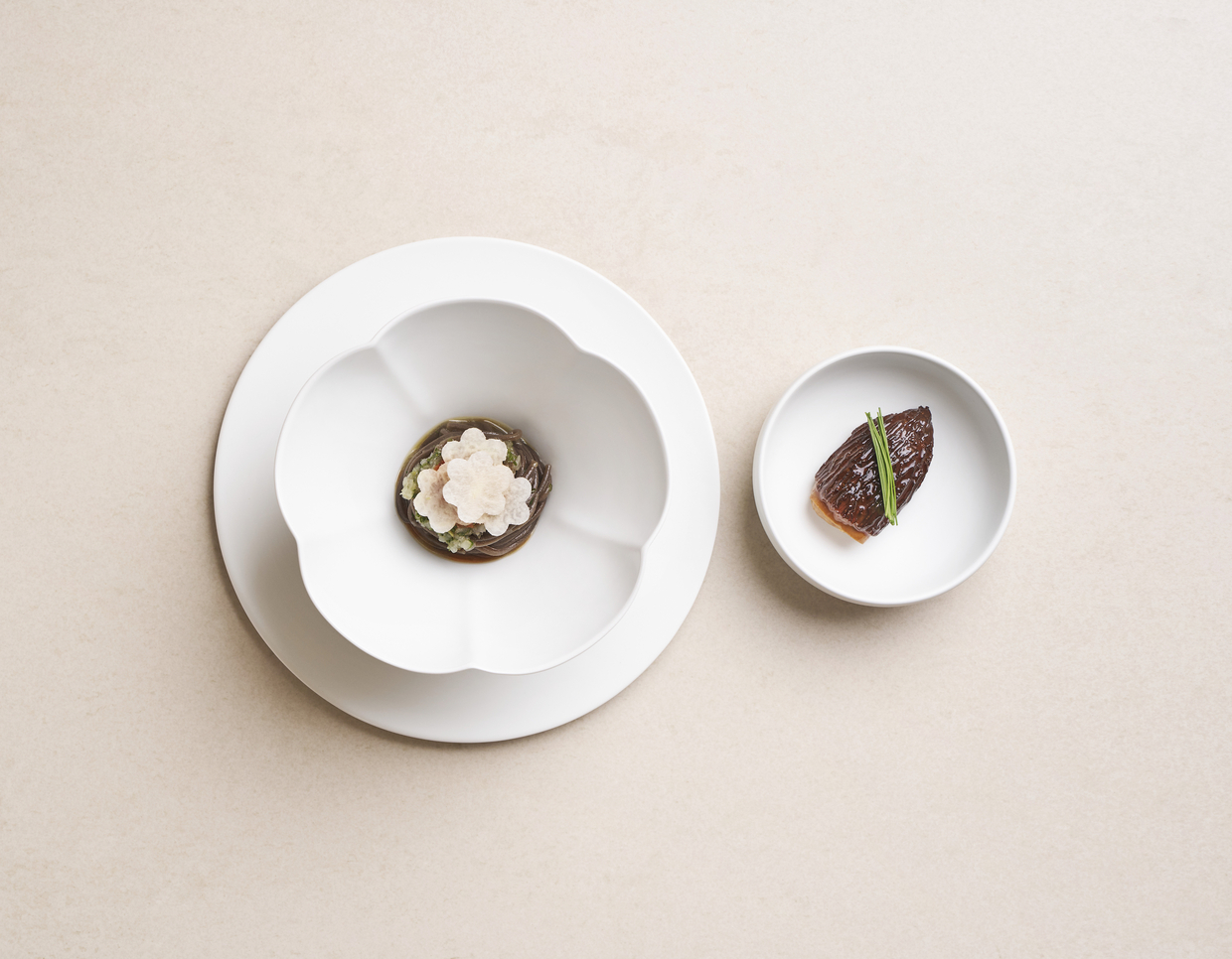 The journey begins with a chilled tomato dongchimi broth and a trio of refined snacks, before moving through courses that capture Chef Han’s personal history. Memilmyeon & Mandu reimagines comfort food with cold buckwheat noodles in white kimchi dressing, paired with a grilled morel dumpling filled with “duckgalbi” (duck meat patty). Nobchi, featuring five-day dry-aged turbot, celebrates Chef Han’s love for fish through a delicate crust and spicy maeuntang butter. The Iberico Ribeye, brined and glazed with galbi sauce, is rich and resonant, recalling the familiar scent of home barbecues. To close, the Daechu dessert transforms the humble jujube into an elegant confection of charcoal tuille, date pastry cream, truffle espuma, and white chocolate ice cream. Rooted in Korean heritage yet refined through a modern lens, NAE:UM captures the essence of who Chef Han is today: Contemplative, generous, and attuned to the art of memory.