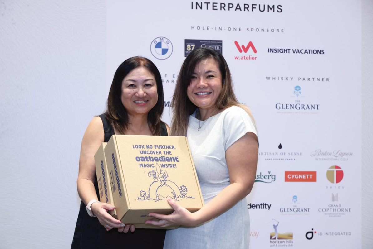 Golfers who signed up were winners even before they teed off. The great goodie bag given out was in itself worth the price of admission. It included the latest issue of PORTFOLIO, an arm sleeve sponsored by Cygnett, a tote bag and voucher sponsored by W Atelier, a box of a dozen golf balls and a polo tee by TaylorMade, Jimmy Choo perfume, and a special addition this year of a Van Cleef Candle sponsored by Interparfums. On top of that, additional items in the goodie bag included a $50 dining voucher to Lawry’s Prime Rib Singapore and a box of Oatbedient Mocha Oatmilk Powder Sachets.