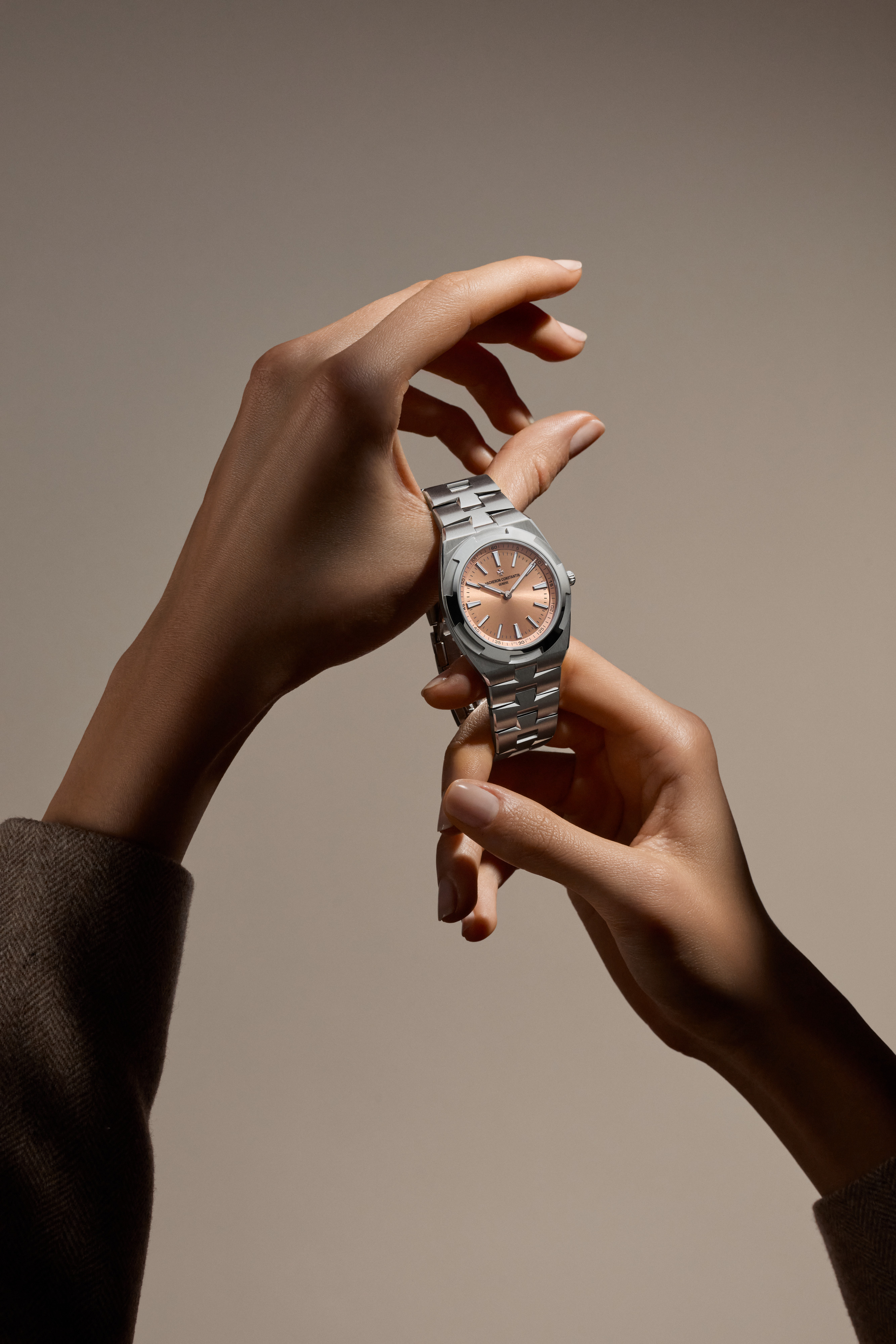 Seven years of development have produced the thinnest Overseas yet. Measuring just 7.35mm thick, the 39.5mm watch is powered by Vacheron Constantin’s new in-house Calibre 2550 – a remarkably slim 2.4mm movement that still delivers 80 hours of power reserve. The debut edition, limited to 255 pieces, pairs a platinum case with a salmon-coloured lacquer dial featuring a satin-finished centre and will be sold exclusively through the brand’s boutiques.