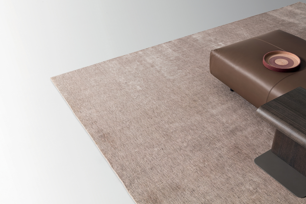 A rug whose tonal shades glimmer evocatively thanks to the light and shade effects of the bamboo yarn. Versatile, compact and resistant, Glint is available in four colour variants and adapts to different styles and spaces. Made on a loom, it has a hand-stitched edge.