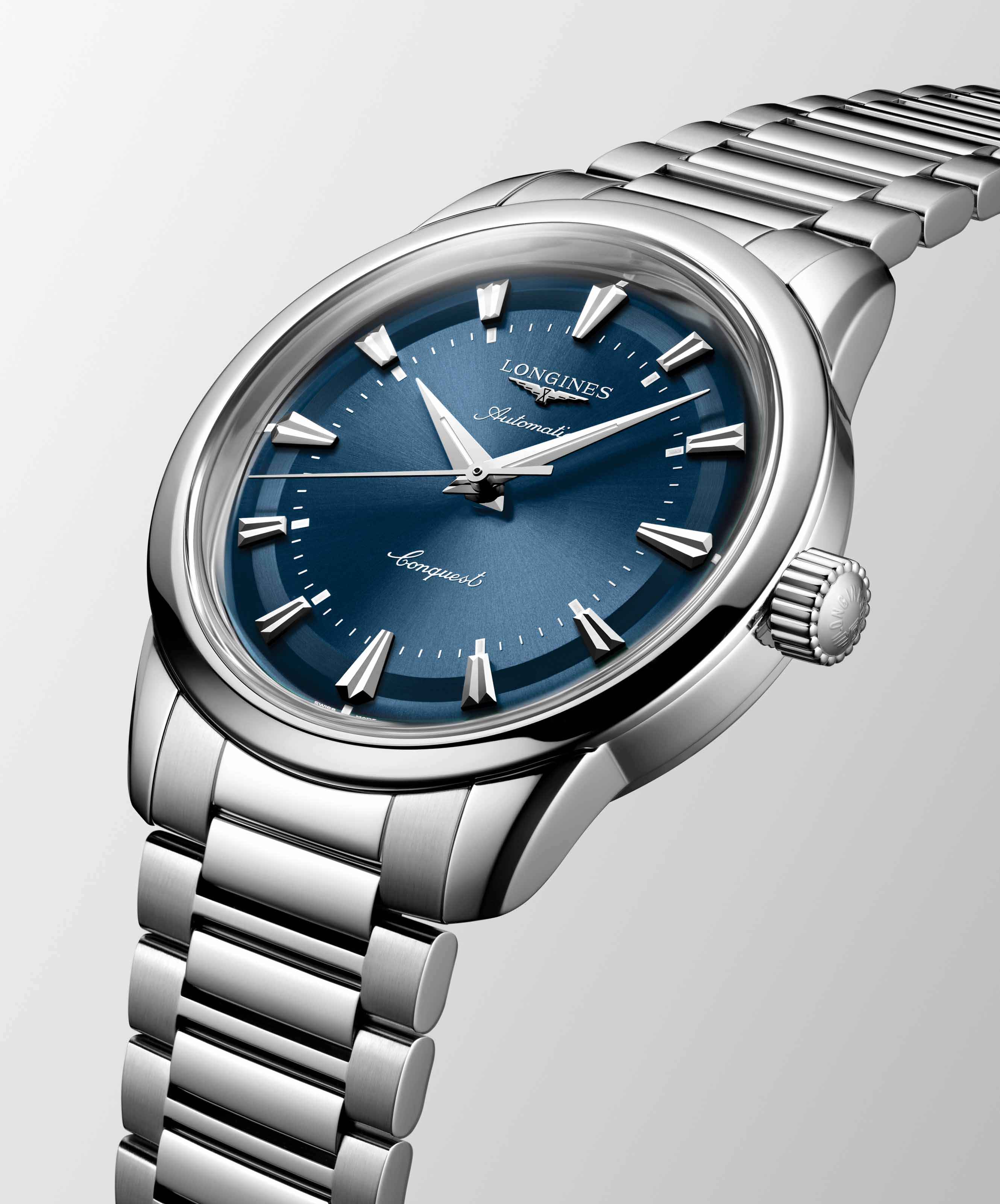 While 38mm is seen as a downsizing move for most brands, for the Conquest Heritage it’s a step up, since the 1954 original measured just 35mm. Last year’s revival offered time-only models with black or silver dials; this year, the collection broadens its palette with fresh dial colours and strap options. Pictured here in blue with an H-link bracelet (with alligator straps still available), it strikes a neat balance between vintage charm and modern wearability.