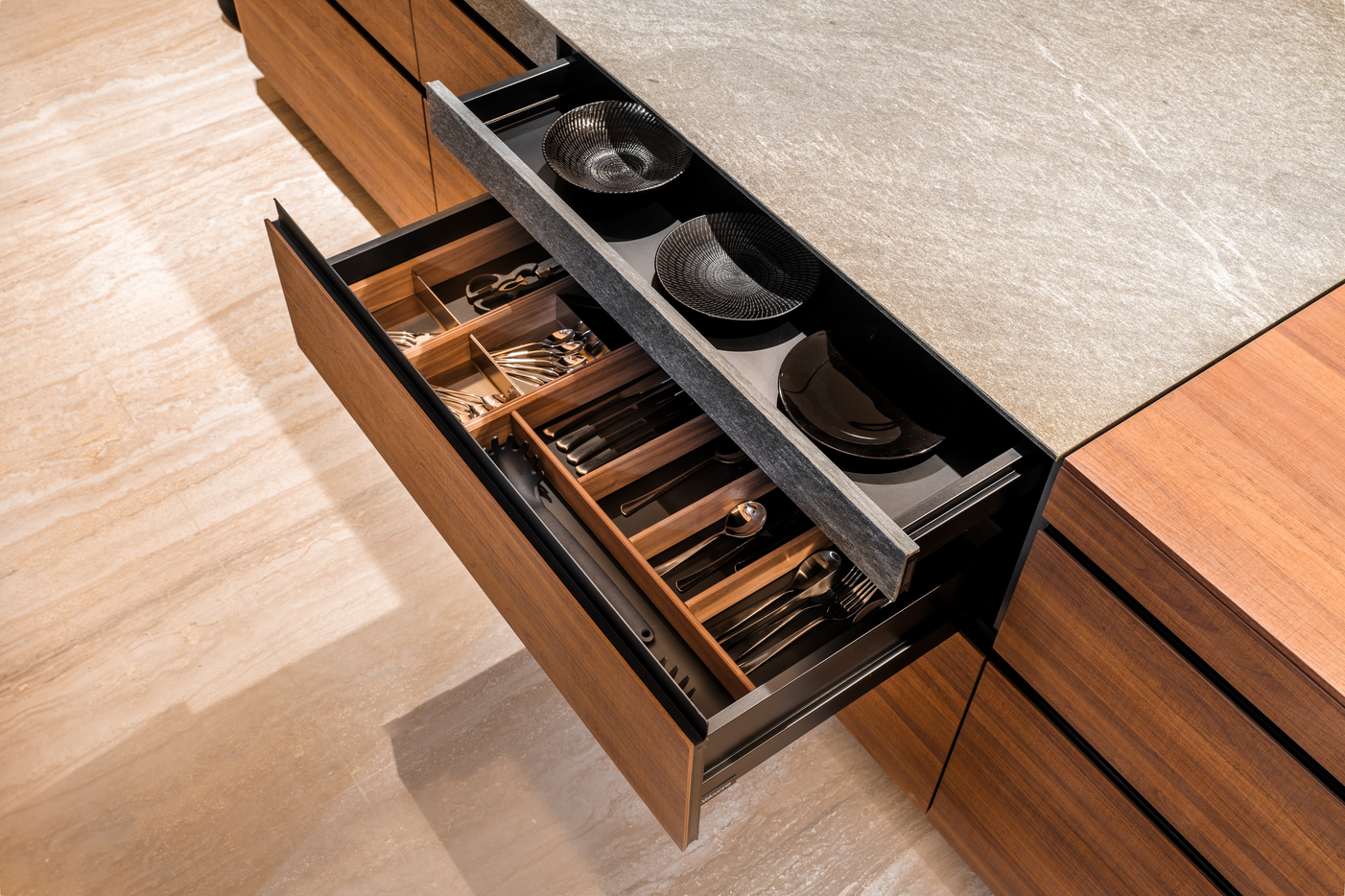 This philosophy is brought to life through close partnerships with leading Italian brands. With Valcucine, Marquis HQO emphasises ergonomic intelligence, sustainability, and innovative materials. Features such as the Ala lift-up door, New Logica back panels, height-adjustable units, and fully recyclable glass-and-aluminium structures elevate everyday kitchen rituals through ease of use and environmental responsibility.