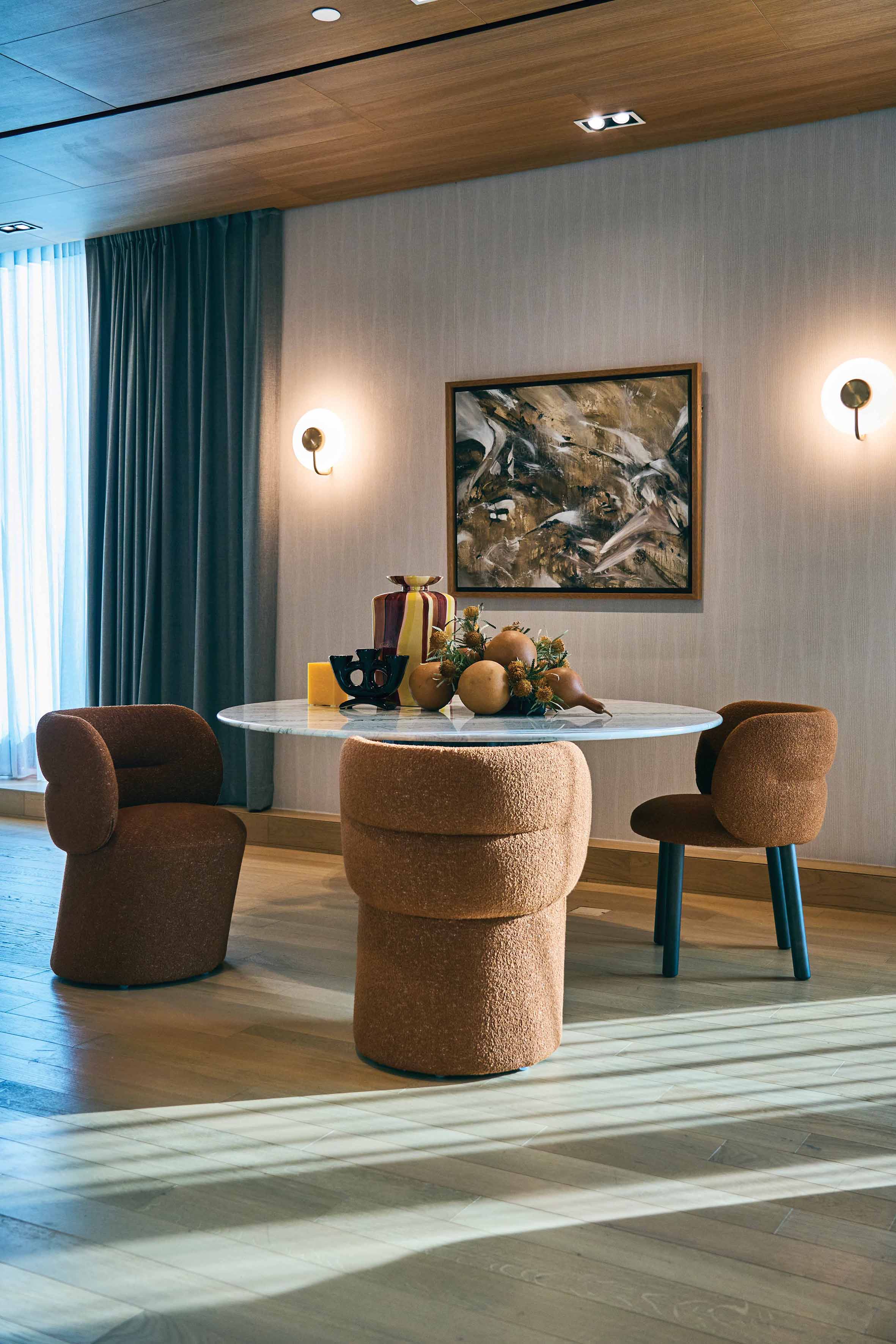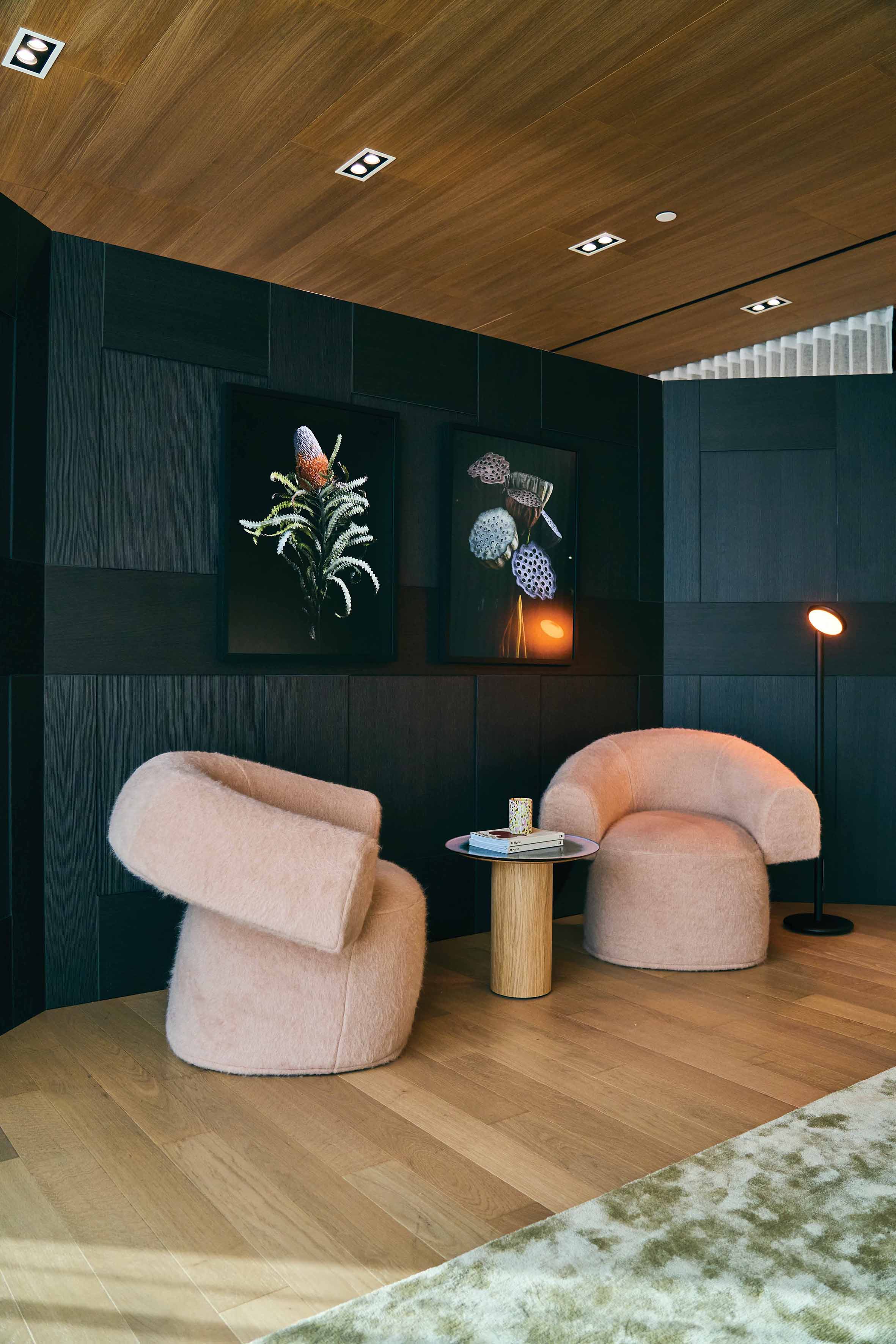 Their concept celebrates the shared sensibilities of Italy and Singapore, weaving together soft geometry, unexpected juxtapositions and rich materiality to create a space that feels both cosmopolitan and intimate. With sweeping views of Marina Bay Sands and the Esplanade as its backdrop, the apartment mirrors the sophistication of global homes where Moroso pieces have taken pride of place.