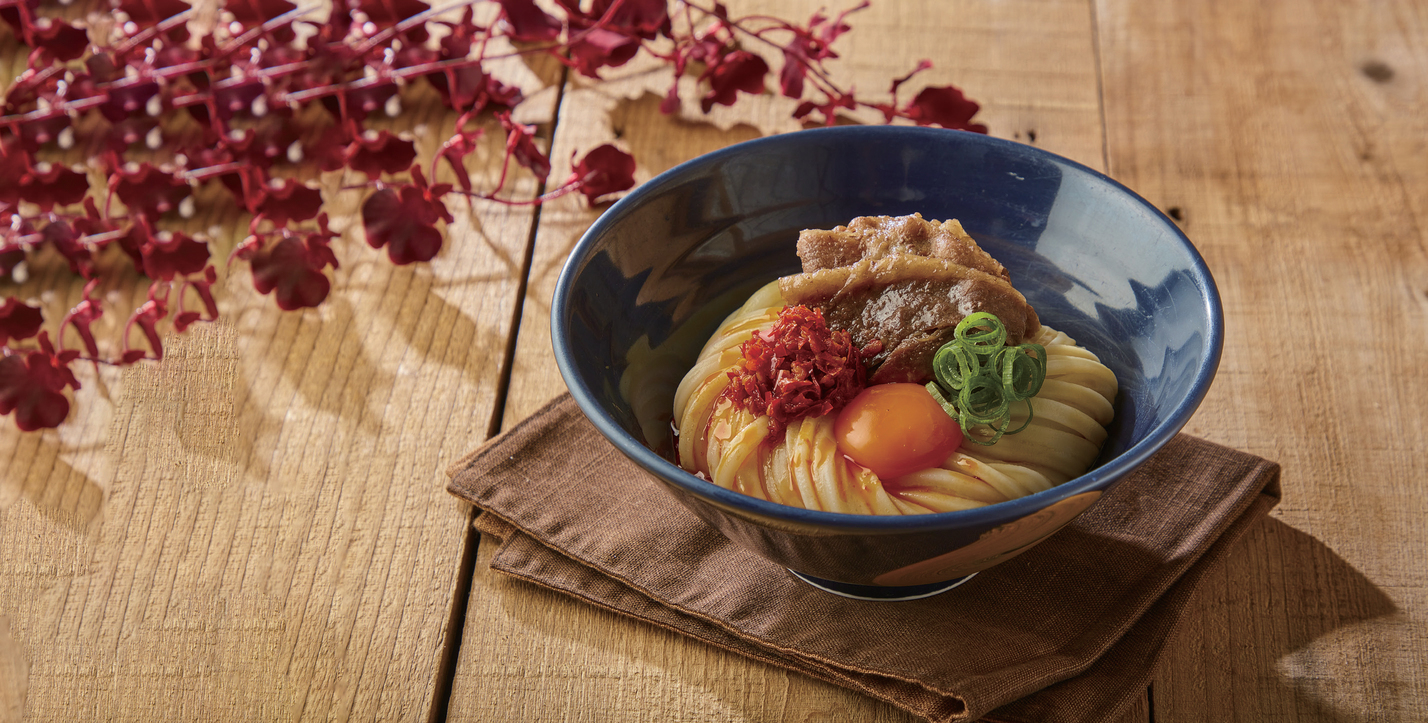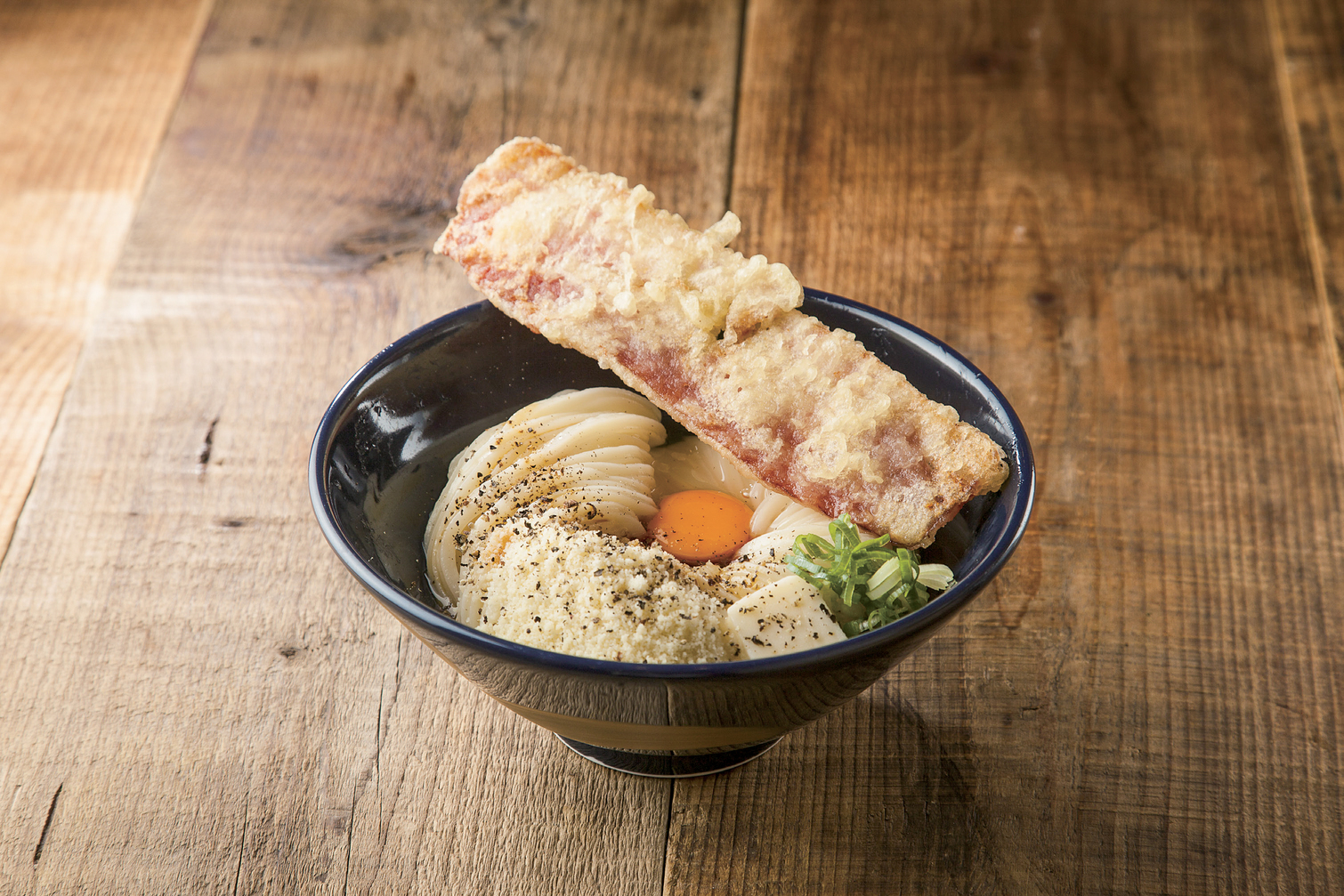 The menu offers a selection of hot, cold, and broth-based udon dishes designed for both comfort and indulgence. Diners are sure to gravitate toward the iconic Carbonara Udon, where thick kamaage noodles are immersed in umami-rich dashi and layered with egg, parmesan, butter, and crowned with a slab of crispy bacon tempura. Mix it all up for an irresistible creamy concoction. Other highlights include the Butter Shoyu Udon with Sweet Potato Tempura, the punchy Spicy Beef Shoyu Udon elevated with homemade mala paste, and chilled options like the Spicy Beef Udon or Mentai-Nori Shoyu Udon.